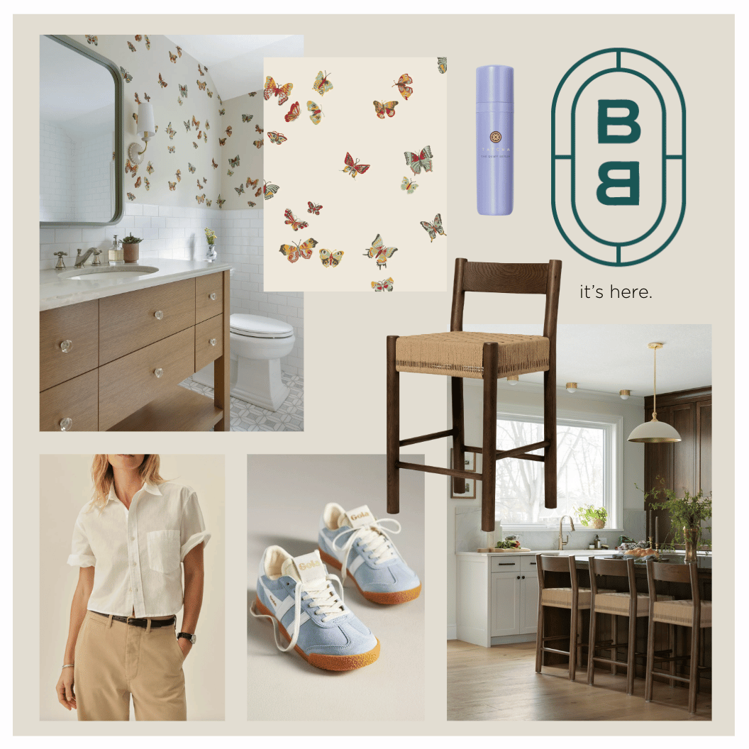 Our Spring Mood Board is here, bringing together a collection of client installs, shoppable pieces, and a few seasonal investments we’re currently eyeing. Consider it a peek inside what’s inspiring our studio right now. Fresh Spring inspired wallpaper, dewy serum that hits perfectly for fine lines (tested and approved), our favorite durable counter stools (worth the investment), and a few season apparel staples.